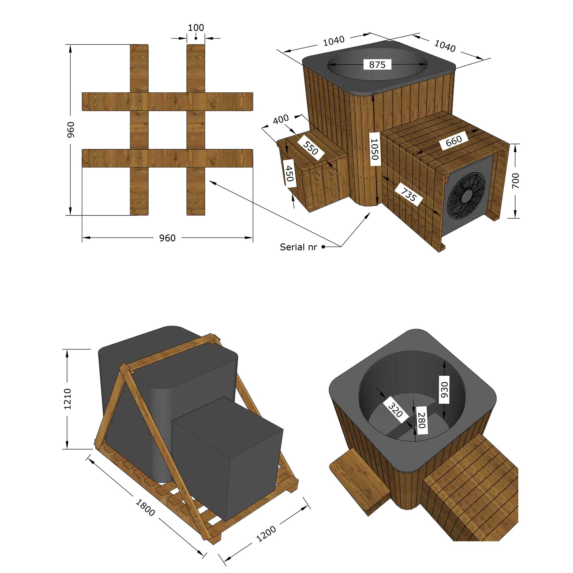 • Thermoholz-Abdeckung für das Heiz-/Kühlsystem inklusive
