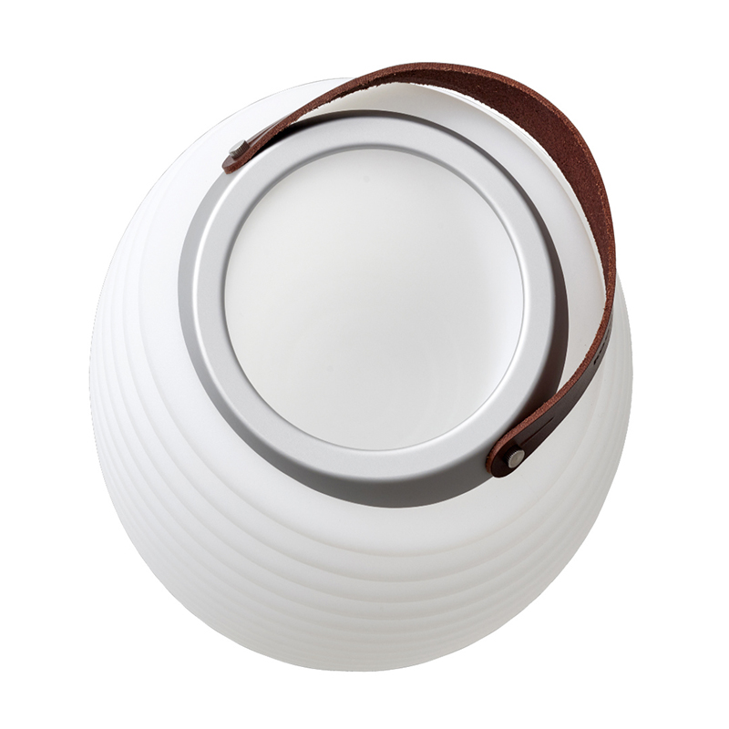- Material: Griff aus Leder / weisses PE-Gehäuse / Ring aus gebürstetem Aluminium / Galvanisierte Nylonfüße