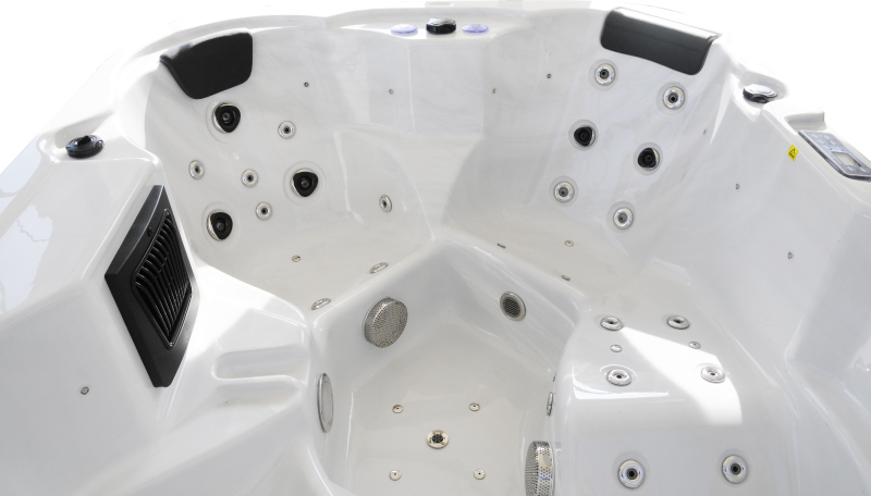Das Modell Atlanta Premium besteht aus hochwertigem Lucite Acryl, glasfaserverstärktem Kunststoff und Edelstahl. Die Wanne ist auf einem Edelstahlrahmen aufgebaut und kann in den Boden eingelassen werden. Insgesamt 53 Jet-Massage-Düsen beleben Ihren Körper und geben ihm neue Energie. Die einstellbaren Massagedüsen können gezielt Muskelverspannungen im Nacken bzw. Schulterbereich lockern und Stress abbauen. Entspannen Sie zu Hause durch verschiedene Sitz- und Liegeplätze im Whirlpool, welche unterschiedliche Massagefunktionen aufweisen.
