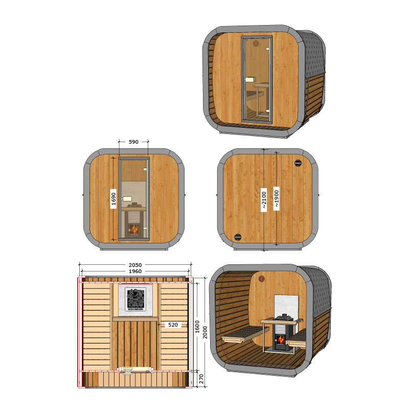 - stabile Standfüße für den sicheren Halt der Sauna