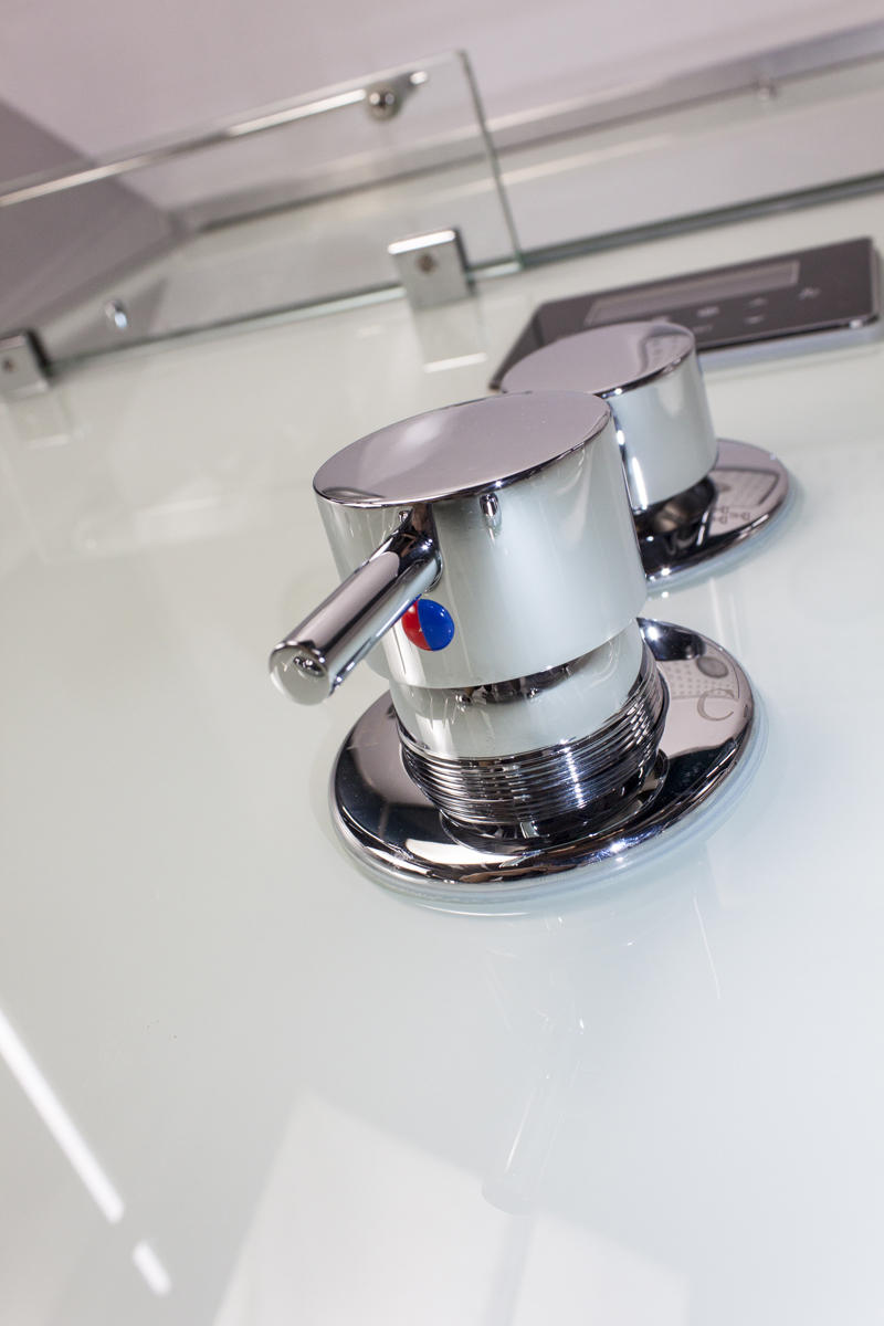 Das Modell Thassos besteht aus Acryl, Glas und einem Aluminium-Rahmen. Sie ist ausgestattet mit einem Dampf-Generator und acht Infrarot-Strahlern. Zusätzlich zur Regendusche finden Sie natürlich auch eine Handbrause.