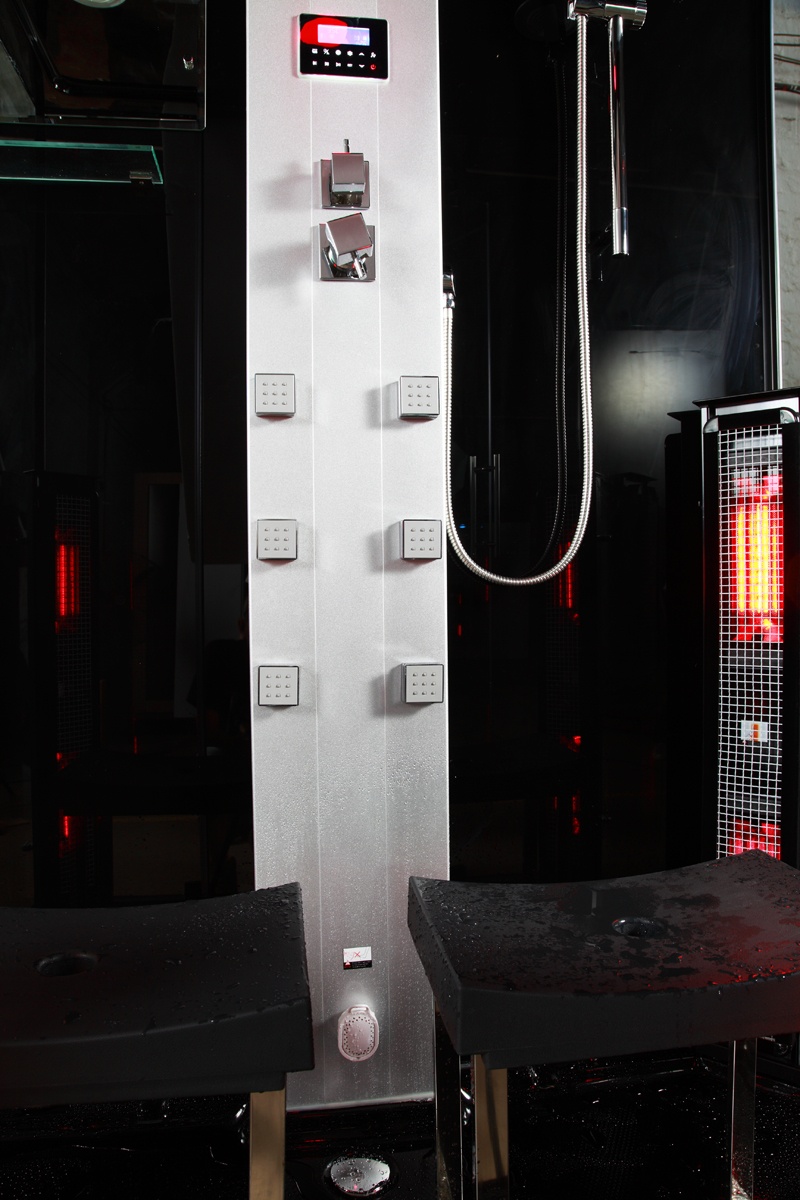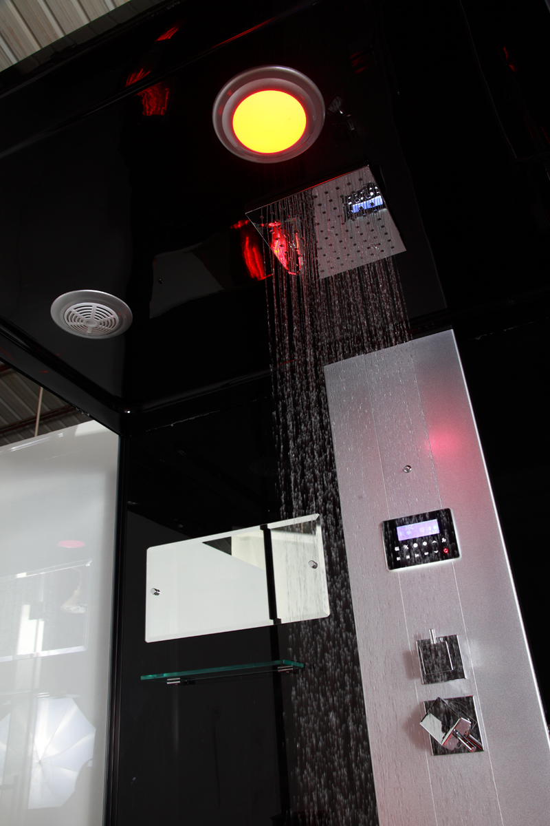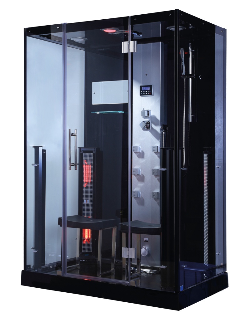 Das Modell Tinos besteht aus schwarzem Acryl, einem Aluminium-Rahmen und ist ausgestattet mit einem Dampf-Generator, sowie mehreren Infrarot-Strahlern. Die zusätzliche Farbsteuerung sorgt für die gewünschte Atmosphäre. Mit unserem neuen Kontrollsystem können Sie nicht nur Temperatur und Zeit steuern, sondern zudem auch das eingebaute Radio bedienen. Ein USB Anschluss für externe Geräte existiert auch.