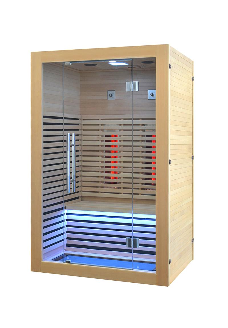 Das Model Amsterdam-S besticht als Infrarotkabine mit edlen Hemlock Holz und ist mit Vollspektrumstrahlern sowie Carbonstrahler ausgestattet, dessen wohltuende Wärme rasch den gesamten Körper erfasst. Die Vollspektrumstrahler erzeugen 10% IR-A , die restlichen 90% teilen sich zwischen IR-B und IR-C Strahlung auf. Zusätzlich sind diese einzeln dimm- und schaltbar. Sitzmöglichkeiten sind für 1-2 Personen vorhanden. Mit dem Kontrollsystem können Sie nicht nur Temperatur und Zeit steuern, sondern zudem auch das eingebaute Radio bedienen. Entfliehen Sie für einen Moment dem Alltag und tun sich und Ihrem Körper etwas Gutes.