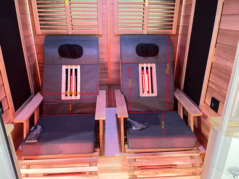 Das Modell Argos Exclusive besticht als Infrarotkabine mit Massagefunktion! Genießen Sie nicht nur die wohltuende Wärme der Infrarotstrahler sondern lassen Sie sich zusätzlich während Ihrer Sitzung die Nacken-,Rücken oder Gesäßmuskulatur auflockern. Die sanfte Luftdruckmassage sorgt für einen ganz besonderen Aufenthalt in der Kabine Argos Exclusive und sorgt für die ultimative Entspannung . Die in der Infrarotkabine verbauten Vollspektrumstrahler erzeugen 27% IR-A (Kurzwellen), 58% IR-B (Mittelwellen) und 15% IR-C (Langwellen). Magnesiumoxidstrahler erzeugen dagegen gerade einmal 5% IR-B und 95% IR-C. Die Leistung dieser Infrarotsauna kann man jeweils in 4 Stufen mithilfe der 2-Zonen Steuerung regulieren. Dies sorgt außerdem für einen geringen Stromverbrauch.