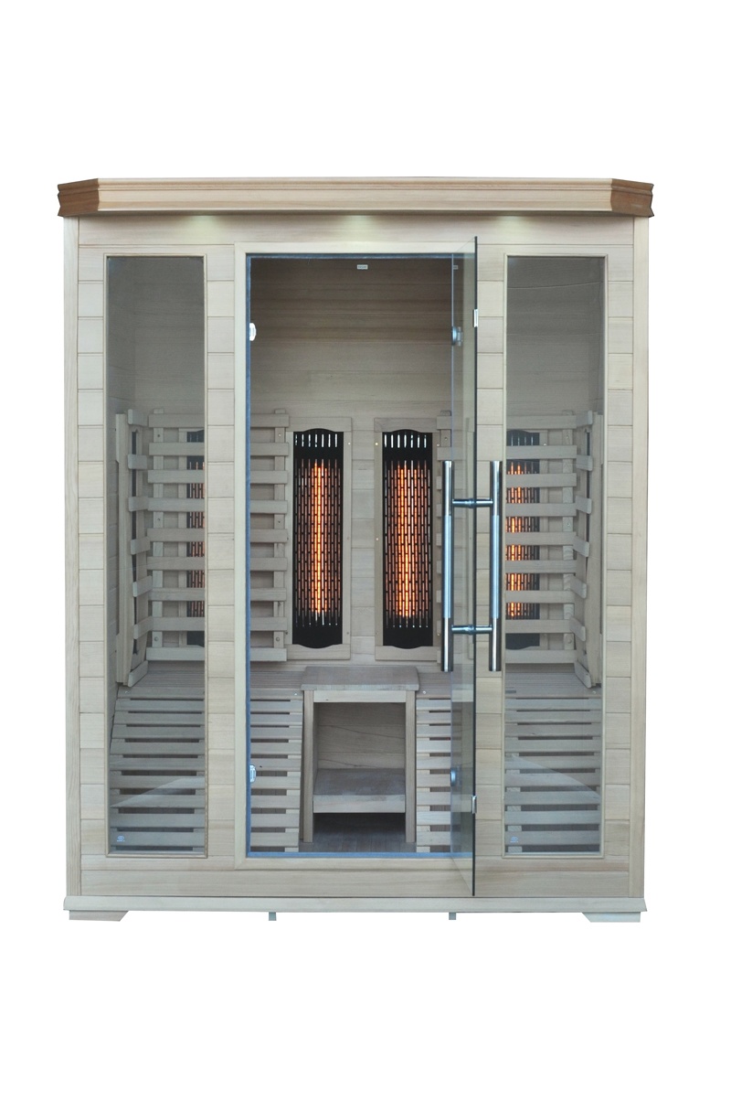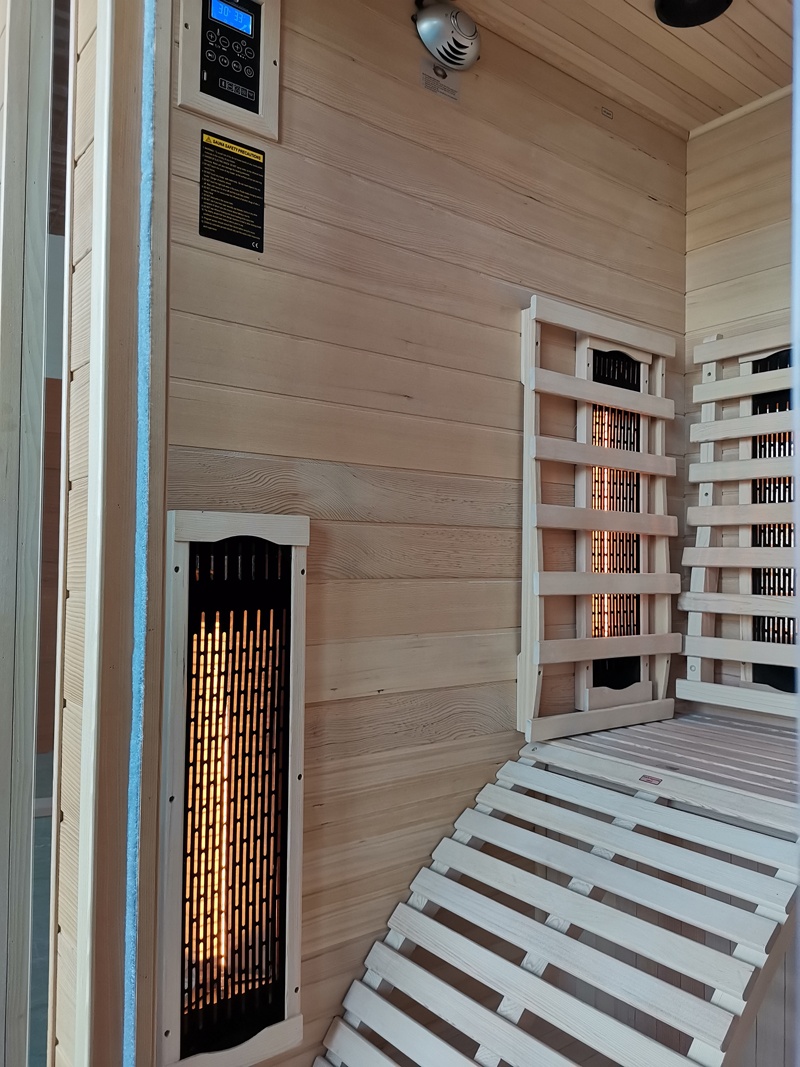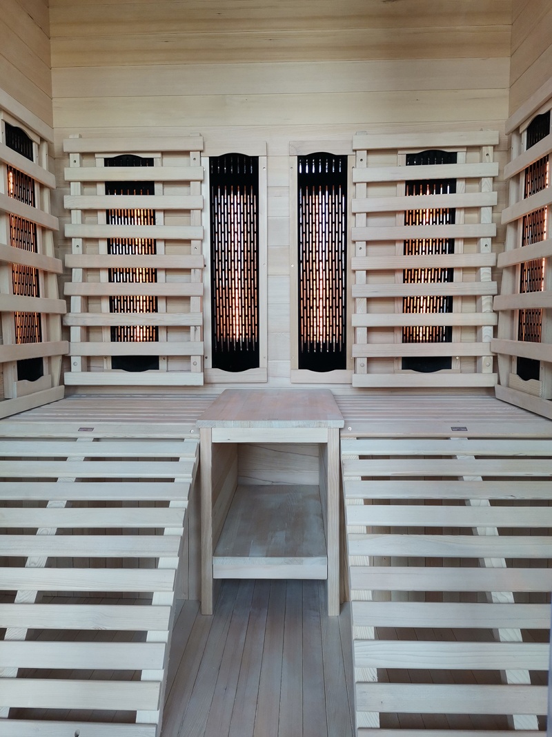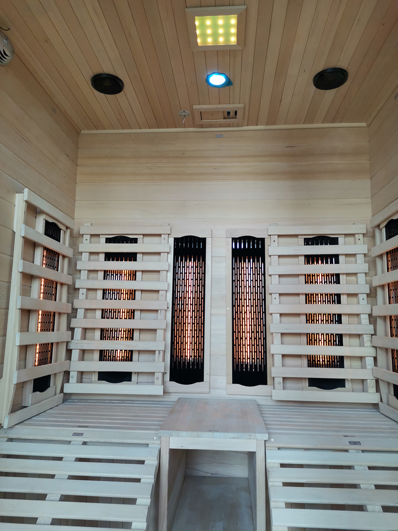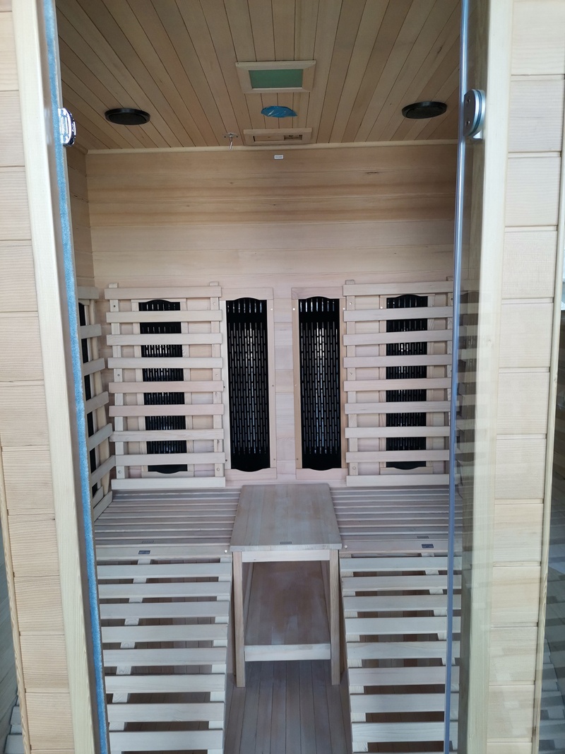Das Model Kenia besticht als Infrarotkabine mit edlen Hemlock Holz und ist mit mehreren Vollspektrumstrahlern ausgestattet, dessen wohltuende Wärme rasch den gesamten Körper erfasst. Die Infrarotstrahlungen erzeugen 10% IR-A , die restlichen 90% teilen sich zwischen IR-B und IR-C Strahlung auf. Sitzmöglichkeiten sind für 2 Personen vorhanden. Sorgen Sie mit der richtigen Musik für die gewünschte Atmosphäre und Entspannung in der Infrarotkabine Kenia. Entfliehen Sie für einen Moment dem Alltag und tun sich und Ihrem Körper etwas Gutes.