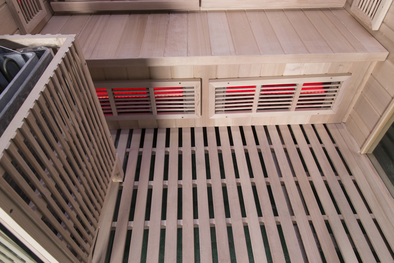 Das Model Haiti ist eine Sauna, zugleich aber auch eine Infrarotkabine, ausgestattet ist sie mit einem 6 KW Saunaofen welches sich manuell steuern lässt und 8 Infrarot-Strahlern die sich über das innovative Control Panel steuern lassen . Über das Control Panel steuern Sie auch alle anderen technischen Zubehöre wie Beispielsweise das Radio, Licht und die Zeitsteuerung. Sie können die Sauna oder die Infrarotstrahler separat nutzen.