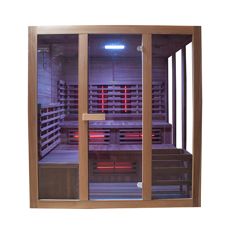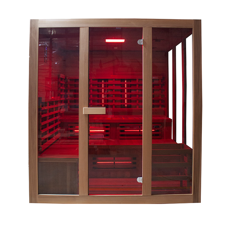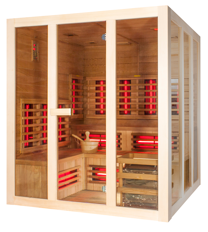 Das Model Sidney ist eine Sauna, zugleich aber auch eine Infrarotkabine, ausgestattet ist sie mit einem 9 KW Saunaofen und mit 12 Infrarot-Strahlern. Sie können die Sauna oder separat die Infrarotstrahler nutzen. Die Sitzmöglichkeiten und die großzügigen Glaswände sorgen für die gewünschte Atmosphäre und Entspannung.