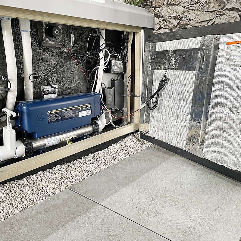 Alle Outdoor Whirlpools von perfect spa sind winterfest. Die optimierte Wärmedämmung der Wanne, der Bodenplatte (bei diesem Modell) und der Außenverkleidung mit Thermoreflektionsisolierung wird durch die energieeffizienten Steuerungen von Gecko und Balboa ergänzt. Diese bieten Ihnen verschiedene Betriebsmodi und einen Frostschutzwächter, um Energie und Aufwand zu minimieren.