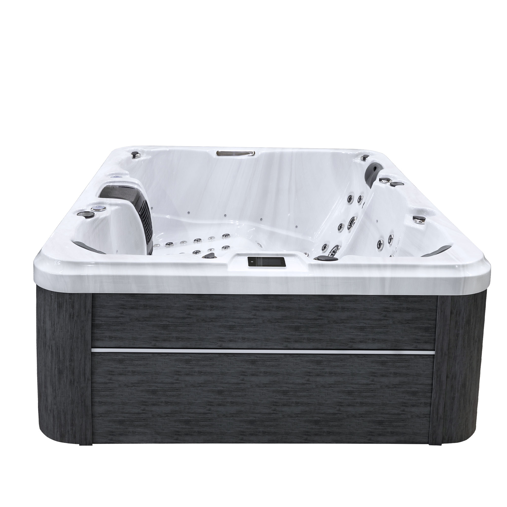 Der neue Outdoor Whirlpool New York Premium besticht bereits optisch mit seiner modernen, dezent beleuchteten Außenverkleidung im zeitlosen „Anthra-Melange“. Näher betrachtet, verspricht die Premium-Ausführung eine Fülle an Extras: Hergestellt aus Aristech-Acryl, glasfaserverstärktem Kunststoff und Edelstahl, steht er auf einem stabilen Edelstahlrahmen mit geschlossener, wärmeisolierter Bodenplatte. 2 integrierte Lautsprecher und Bluetooth sorgen für eine Extraportion Unterhaltung.