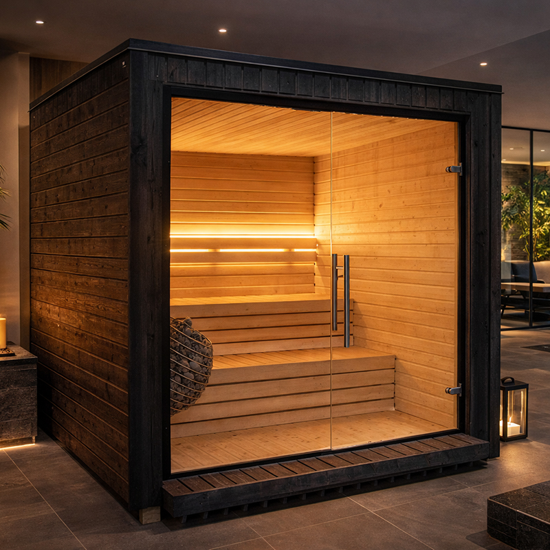 Die LUMI Sauna bringt die Ruhe, Klarheit und Ästhetik skandinavischen Designs direkt zu Ihnen nach Hause. Inspiriert vom nordischen Minimalismus vereint sie zeitlose Eleganz, hochwertige Materialien und durchdachte Funktionalität auf höchstem Niveau. Die großzügige Glasfront öffnet den Raum nach außen und schafft eine helle, offene Atmosphäre. So verschmilzt Ihr Saunaerlebnis mit der Natur – für maximale Entspannung und echtes Wohlbefinden.