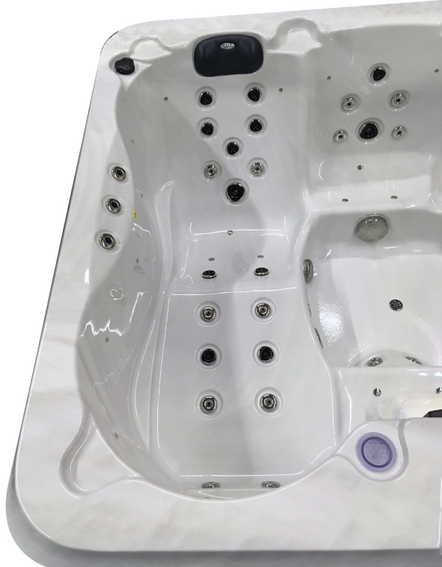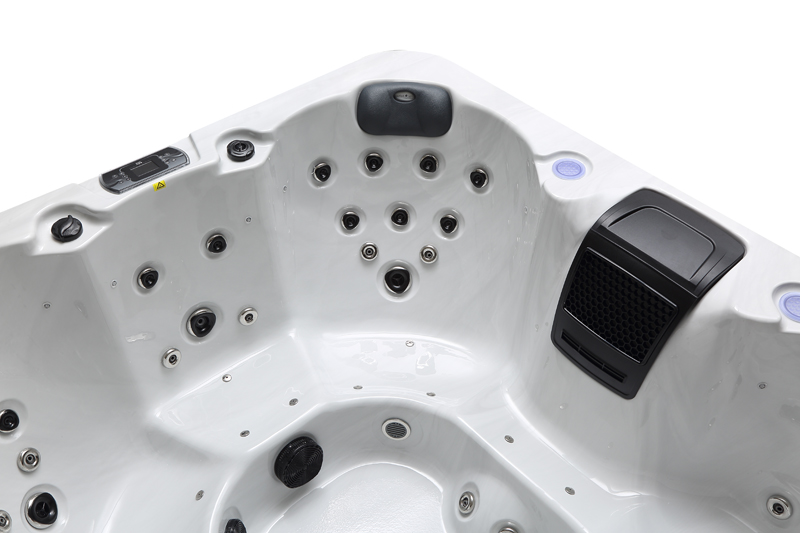 Unser Whirlpool Outdoor Phoenix Premium besteht aus hochwertigem Lucite Acryl, glasfaserverstärktem Kunststoff und Edelstahl. Die Wanne ist auf einem Edelstahlrahmen aufgebaut und kann in den Boden eingelassen werden. Insgesamt 67 Jet-Massage-Düsen beleben Ihren Körper und geben ihm neue Energie. Die einstellbaren Massagedüsen können gezielt Muskelverspannungen im Nacken bzw. Schulterbereich lockern und Stress abbauen. Entspannen Sie zu Hause durch verschiedene Liege- und Sitzplätze im Whirlpool, welche unterschiedliche Massagefunktionen aufweisen.