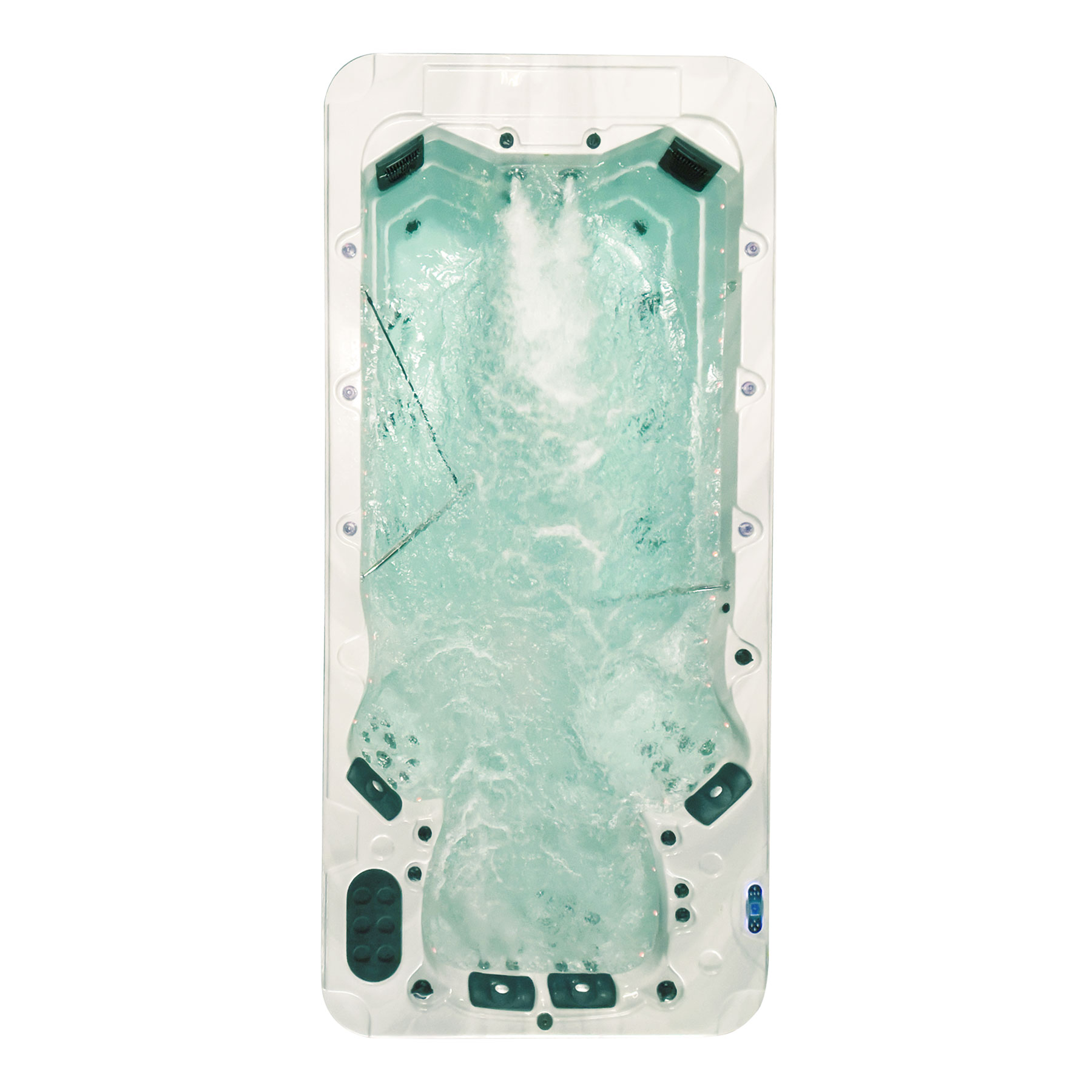 In unserem Swim Spa PS-SS-3370 ist eine Gecko Steuerung verbaut, der Marktführer weltweit im Bereich der Whirlpoolsteuerungen. Zusätzlich ist dieser Swim Spa WiFi vorbereitet. Dies ermöglicht es Ihnen mit dem optional erhältlichen Gecko In.Touch 2 Wifi Interface Modul, den Whirlpool von Ihrem Smartphone oder Tablet aus zu steuern, selbst wenn Sie nicht Zuhause sein sollten. Durch den intigrierten Bypass haben Sie sogar die Möglichkeit eine Wärmepumpe oder einen zusätzlichen Sandfilter einzubauen.