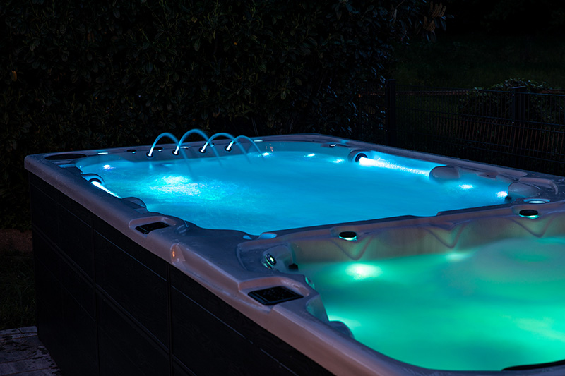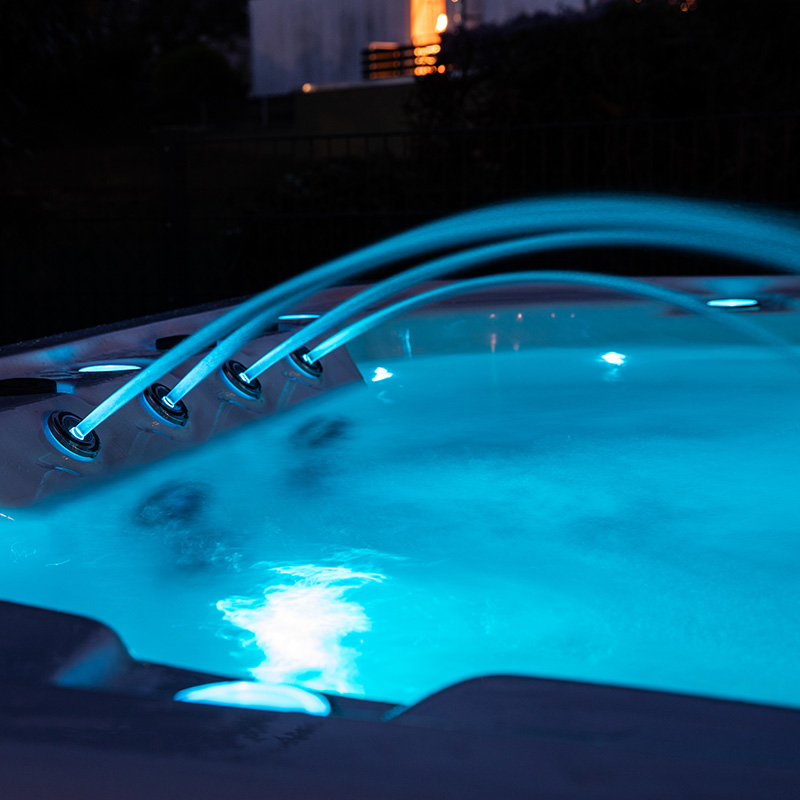Sport und Wellness in einem? Kein Problem, unser Swim Spa PS-SS-5800 machts möglich. Ob Aquasport, Schwimmtraining oder andere körperliche Anstrengungen, durch die vorhandenen Sitzplätze mit intigrierten Massagedüsen die unterschiedliche Massagefunktionen ausfweisen, und den 2 getrennten Zonen, können Sie direkt im Anschluss zur Entspannung übergehen und sich und Ihrem Körper etwas gutes tun. Das Modell PS-SS-5800 besteht aus hochwertigem Lucite Acryl und glasfaserverstärktem Kunststoff. Die Wanne ist auf einem galvanisch verzinkten Stahlrahmen aufgebaut und kann in den Boden eingelassen werden. Insgesamt 48 Jet-Massage-Düsen beleben Ihren Körper und geben ihm neue Energie. Die einstellbaren Massagedüsen können gezielt Muskelverspannungen im Nacken bzw. Schulterbereich lockern und Stress abbauen. In unserem Swim Spa PS-SS-5800 sind 2 Gecko Steuerungen verbaut. Gecko ist einer der Marktführer Weltweit im Bereich der Whirlpoolsteuerungen.