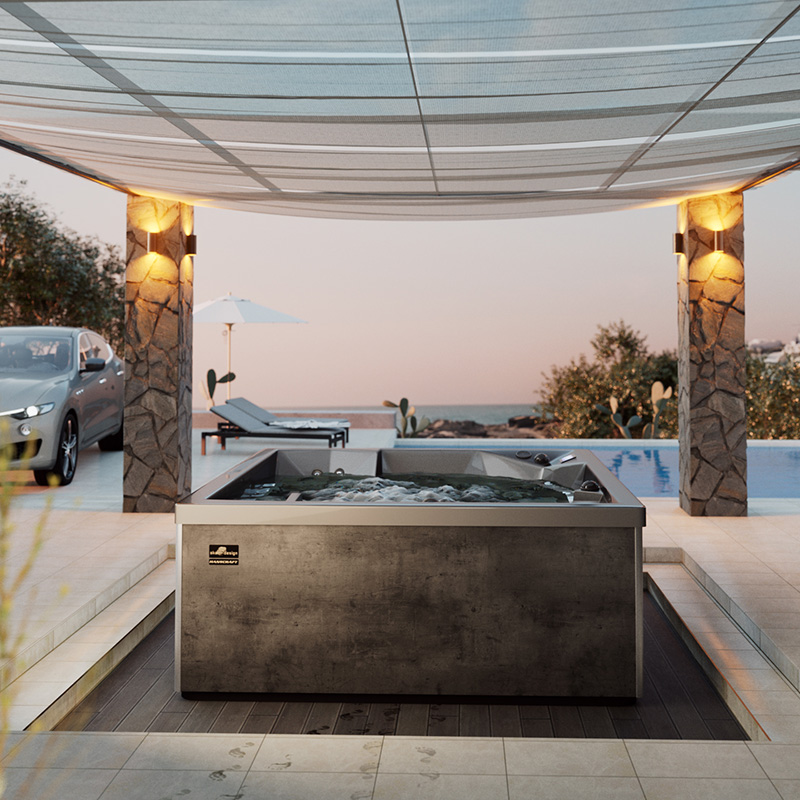 Entwickelt, um das ganze Jahr über im Freien betrieben zu werden, bieten alle Komponenten Zuverlässigkeit und Langlebigkeit bei jeder Temperatur und Witterung. Ein integrierter Bypass zum späteren Anschließen einer Wärmepumpe sowie eine energiesparende Thermoabdeckung sind im Angebot bei Perfect Spa inbegriffen. Bestellen Sie jetzt und erhalten Sie innerhalb von 4-6 Wochen Ihren maßgefertigten Außenwhirlpool aus europäischer Produktion! Wählen Sie aus einer Vielzahl von Wannenfarben und Außendekoren, die in unserer Bildergalerie und technischen Beschreibung zu finden sind. Besuchen Sie uns jederzeit in unserem Showroom in Rodenbach, um die verschiedenen Varianten persönlich zu begutachten und Ihre Traum-Oase zu verwirklichen.