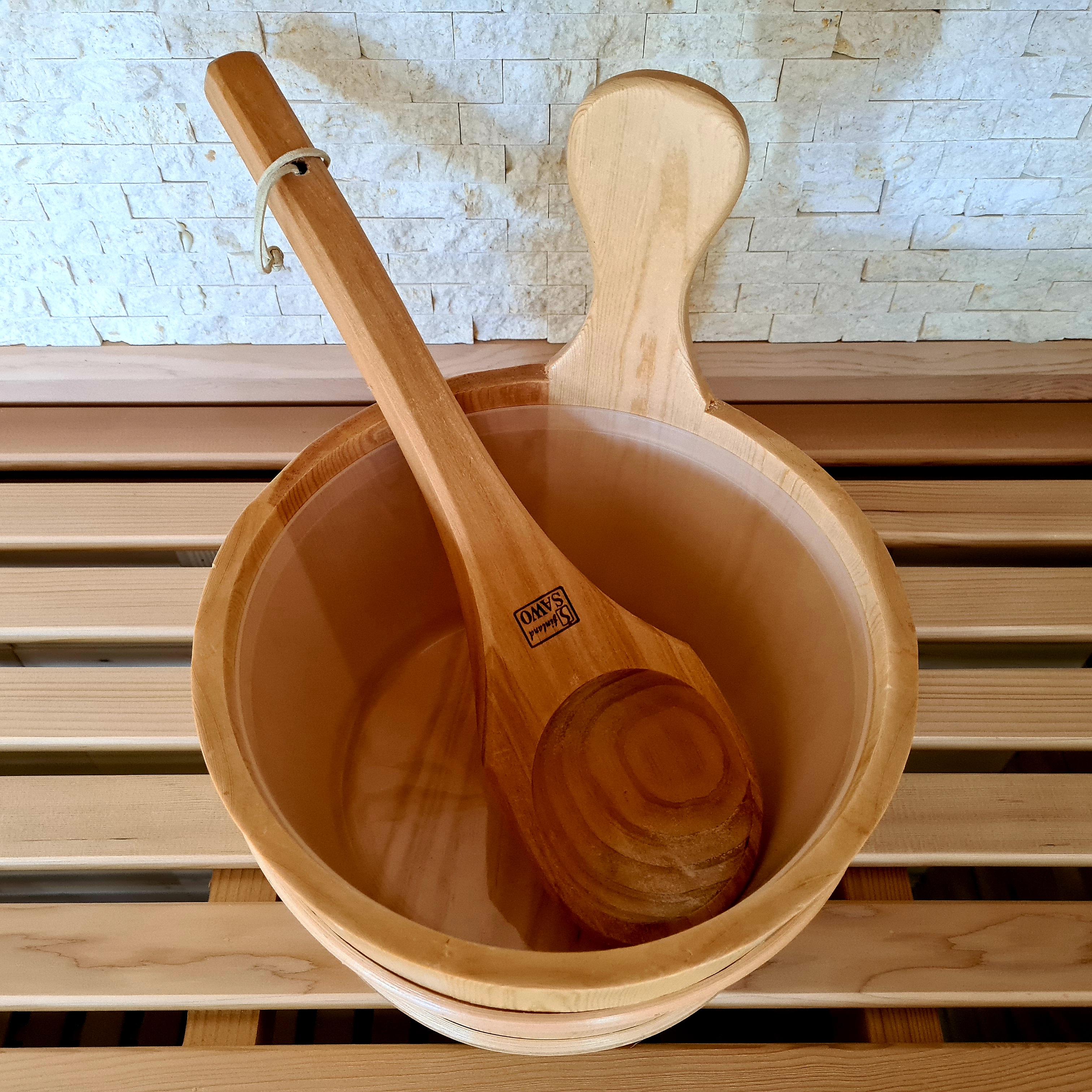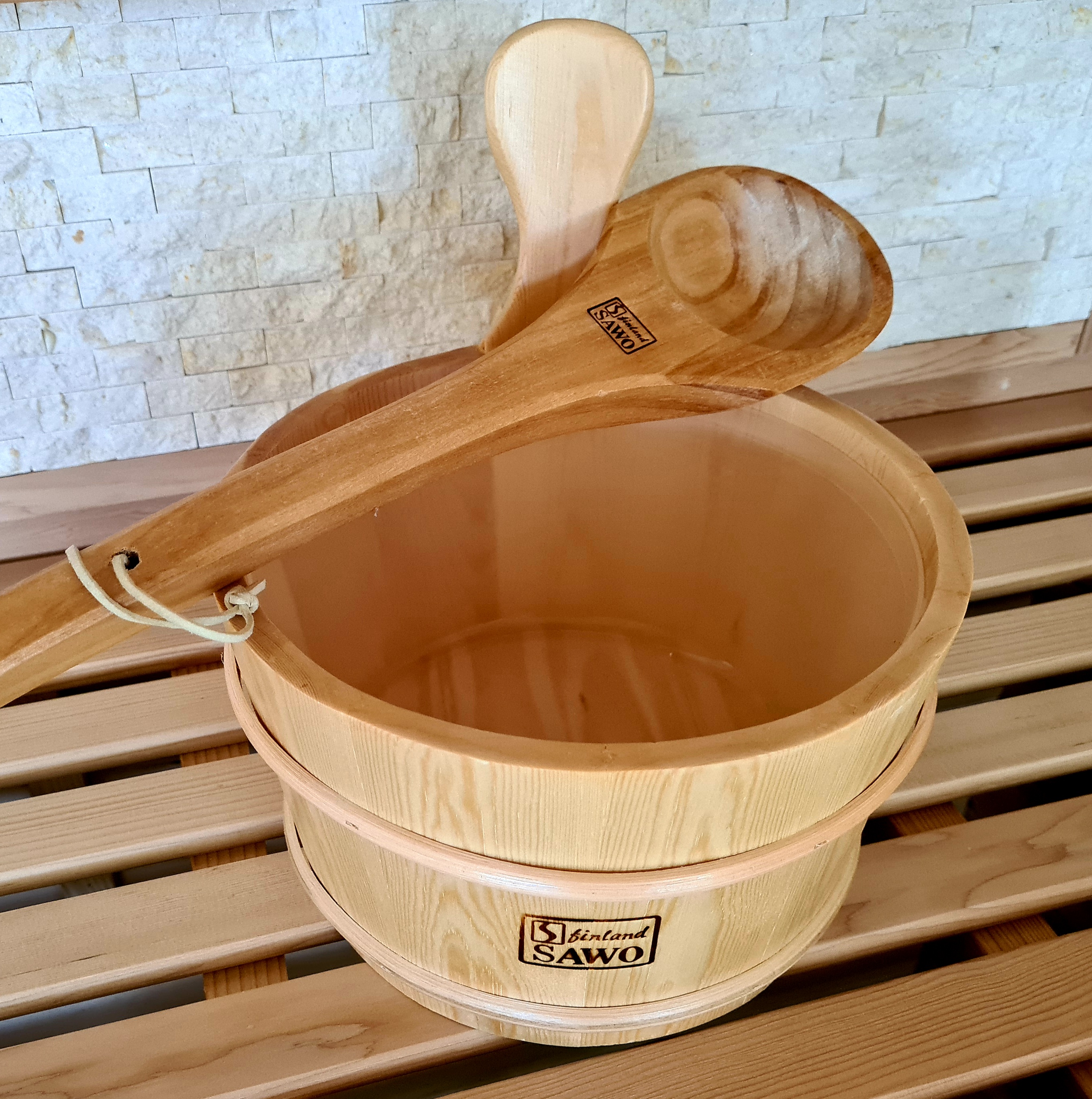 Der Saunaeimer sowie die Augusskelle sind die perfekte Ergänzung für Ihre Sauna